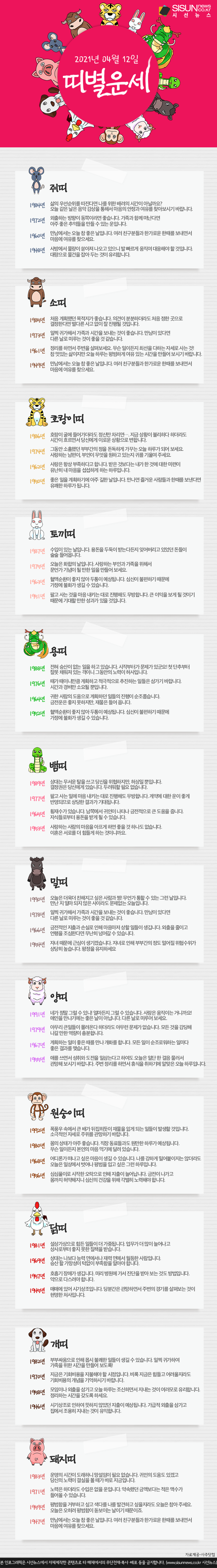 [시선뉴스] 2021년 04월 12일, 오늘의 띠별 운세입니다.