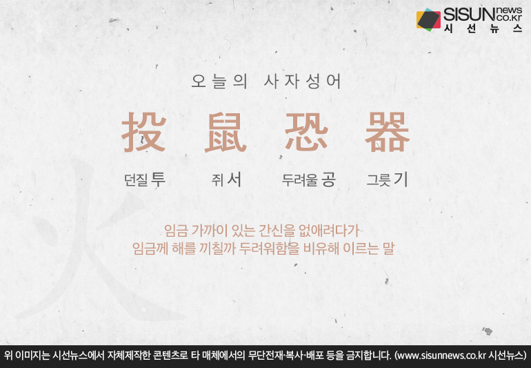오늘의 사자성어 투서공기[投鼠恐器]입니다.