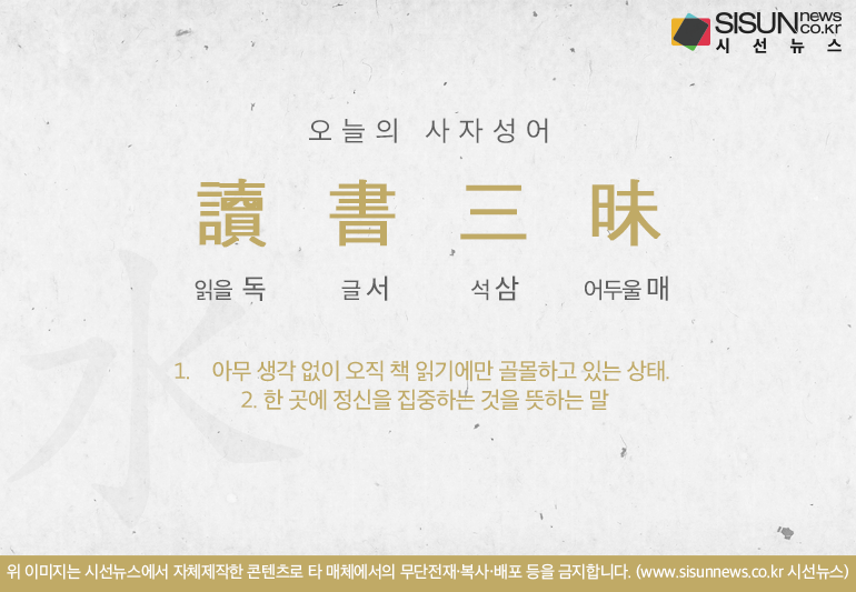 오늘의 사자성어 독서삼매[讀書三昧]입니다.