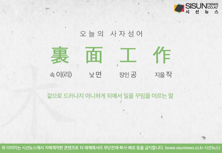 오늘의 사자성어 이면공작[裏面工作]입니다.