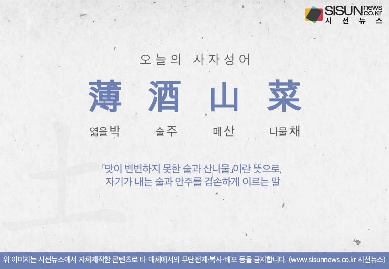오늘의 사자성어 박주산채[薄酒山菜]입니다.