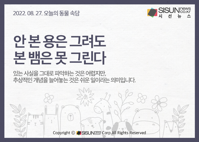 오늘의 동물속담은 <안 본 용은 그려도 본 뱀은 못 그린다>입니다.