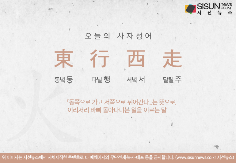 오늘의 사자성어 동행서주[東行西走]입니다.