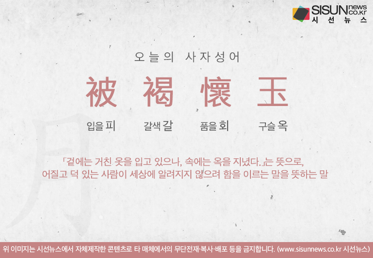 오늘의 사자성어 피갈회옥[被褐懷玉]입니다.