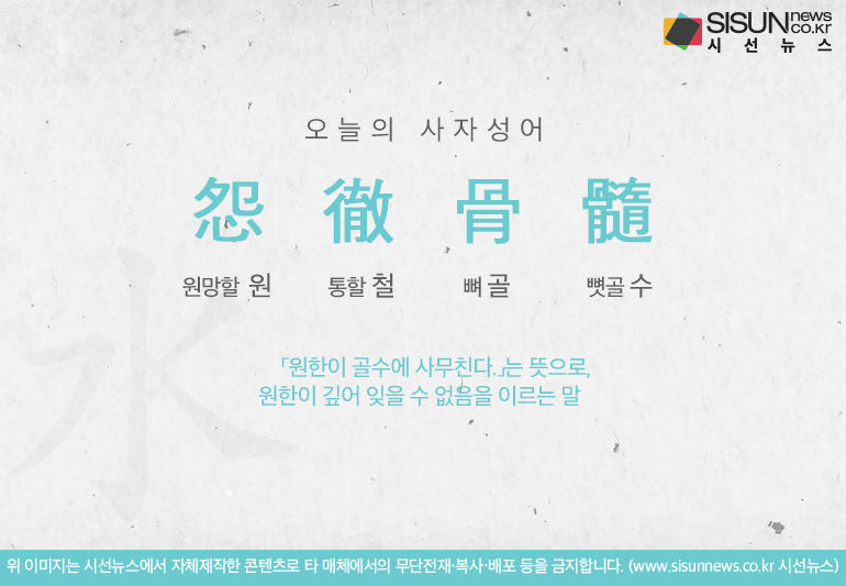 오늘의 사자성어 원천골수[怨徹骨髓]입니다.