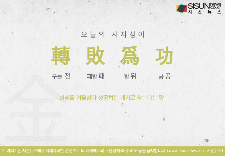 오늘의 사자성어 전패위공[轉敗爲功]입니다.