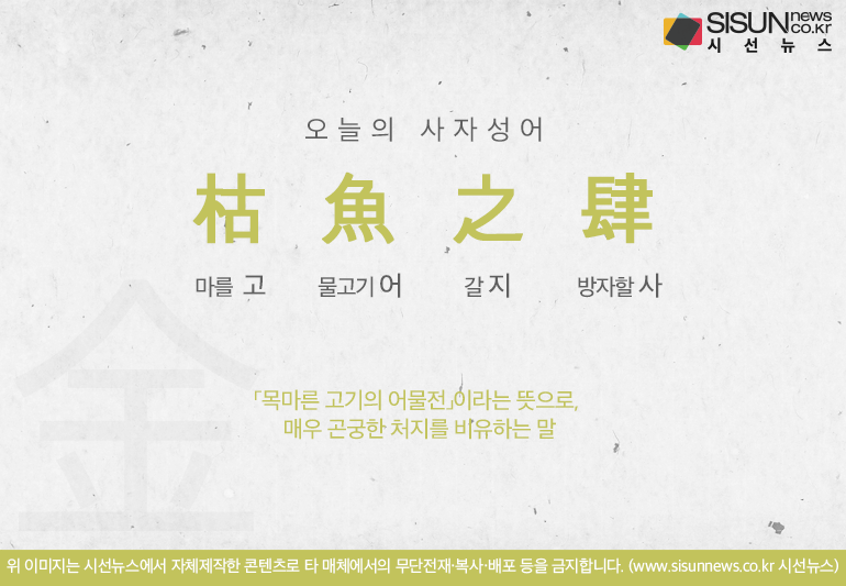 오늘의 사자성어 고어지사[枯魚之肆]입니다.