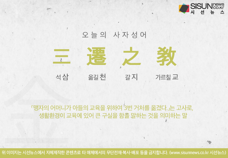오늘의 사자성어 삼천지교[三遷之敎]입니다.