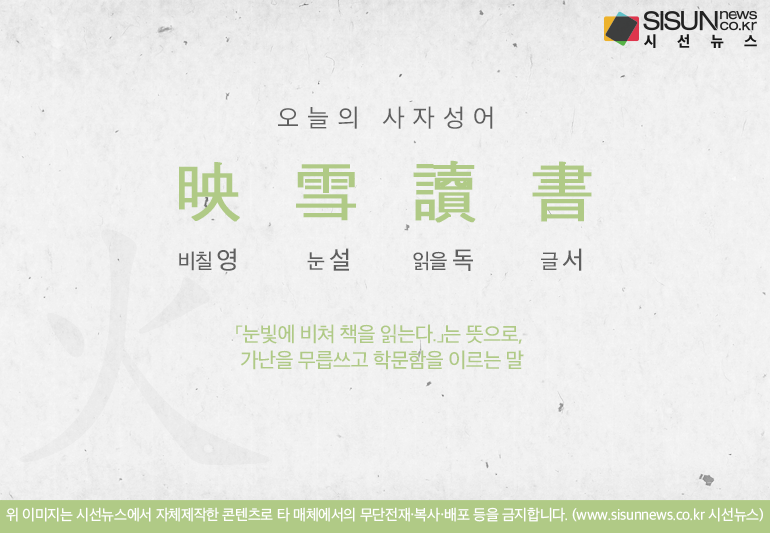 오늘의 사자성어 영설독서[映雪讀書]입니다.