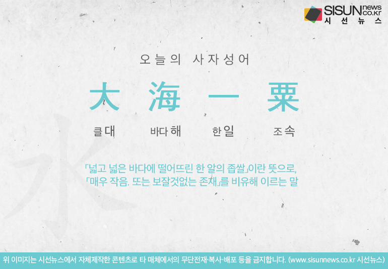 오늘의 사자성어 대해일속[大海一粟]입니다.
