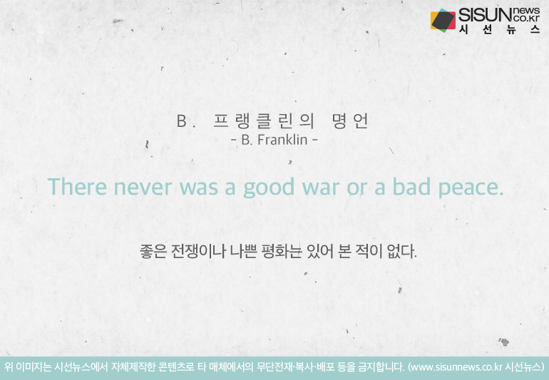 ‘좋은 전쟁이나 나쁜 평화는 있어 본 적이 없다.’ <B. 프랭클린>