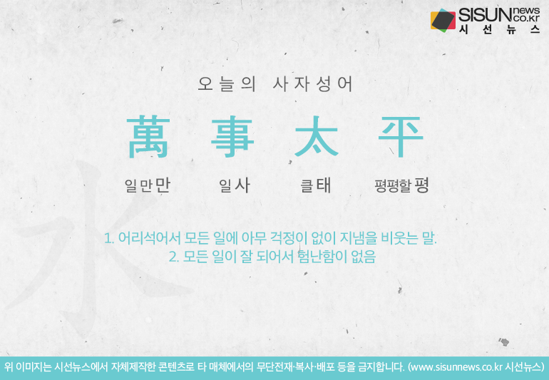오늘의 사자성어 만사태평[萬事太平]입니다.