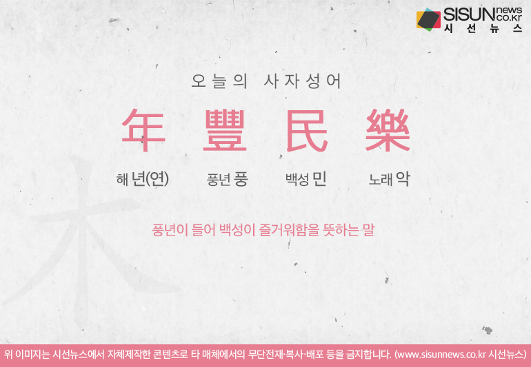 오늘의 사자성어 연풍민락[年豐民樂]입니다.