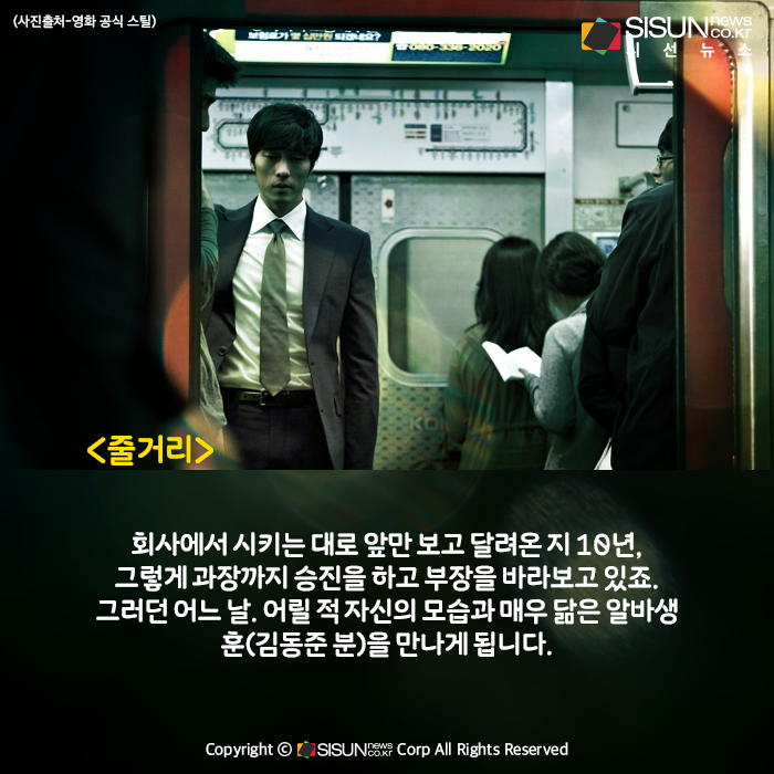 시선뉴스=박진아 기자ㅣ가족과 함께 할 때, 혼자서 울고 싶을 때, 사랑하는 연인과 로맨스를 한껏 더 즐기고 싶을 때, 당신은 어떤 영화를 선택하나요? 많은 영화들 속에서 결정을 내리기 어려운 당신에게 영화를 추천, 요리합니다. 오늘의 영화는 ‘회사원(A Company Man, 2012)’입니다.
