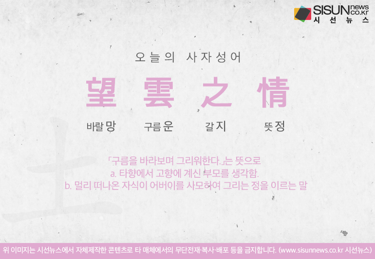 오늘의 사자성어 망운지정[望雲之情]입니다.