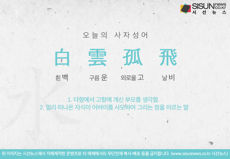 오늘의 사자성어 백운고비[白雲孤飛]입니다.