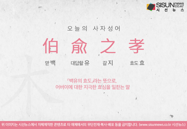 오늘의 사자성어 백유지효[伯兪之孝]입니다.