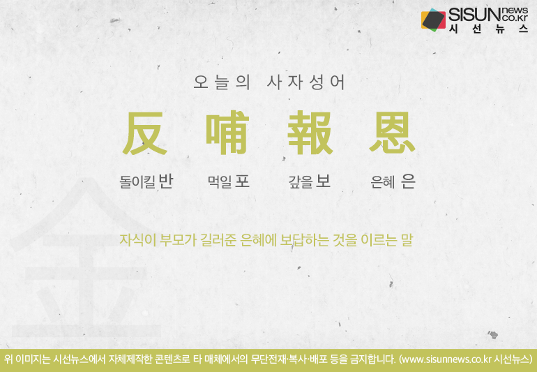 오늘의 사자성어 반포보은[反哺報恩]입니다.