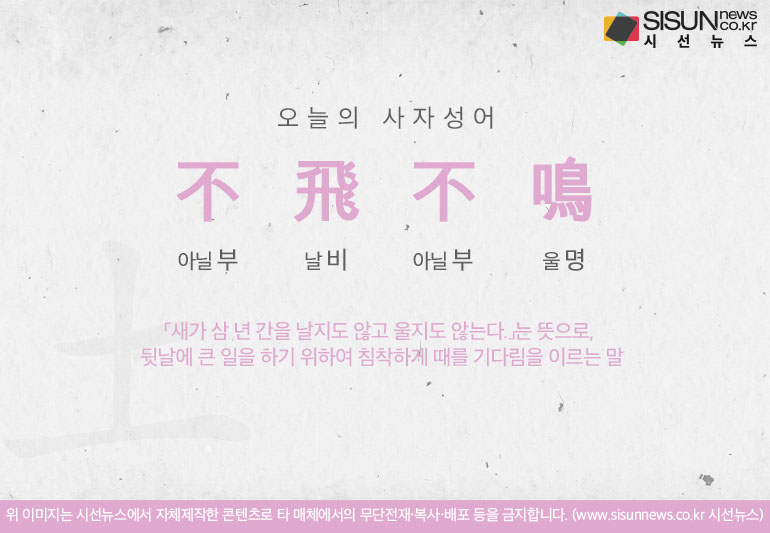오늘의 사자성어 불비불명[不飛不鳴]입니다.