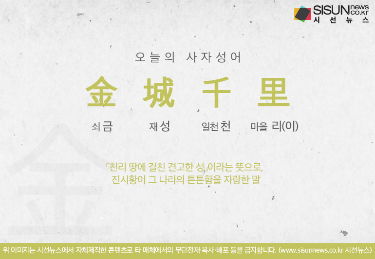 오늘의 사자성어 금성천리[金城千里]입니다.