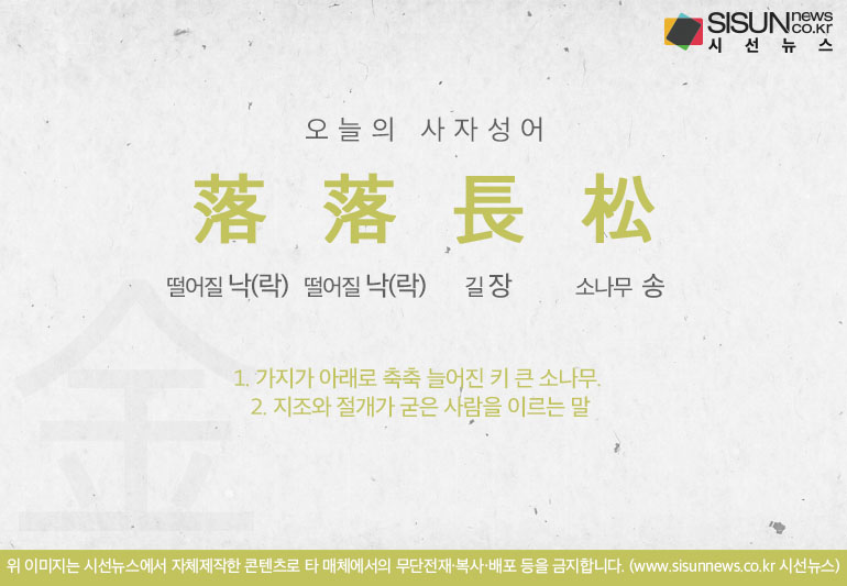 오늘의 사자성어 낙락장송[落落長松]입니다.