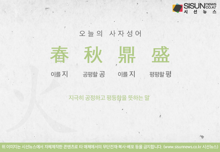 오늘의 사자성어 춘추정성[春秋鼎盛]입니다.