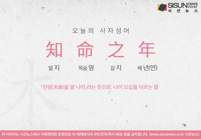 오늘의 사자성어 지명지년[知命之年]입니다.