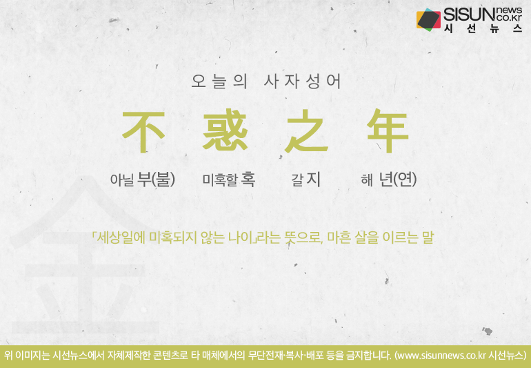 오늘의 사자성어 불혹지년[不惑之年]입니다.