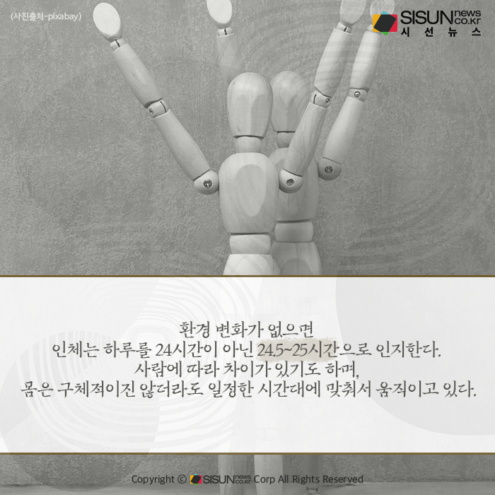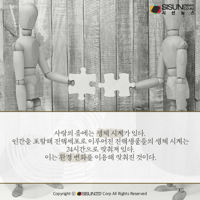 사람의 몸에는 생체 시계가 있다. 인간을 포함해 진핵세포로 이루어진 진핵생물들의 생체 시계는 24시간으로 맞춰져 있다. 그런데 이는 환경 변화를 이용해 맞춰진 것으로, 환경 변화가 없으면 인체는 하루를 24시간이 아닌 24.5~25시간으로 인지한다. 사람에 따라 차이가 있기도 하며, 몸은 구체적이진 않더라도 일정한 시간대에 맞춰서 움직이고 있다.