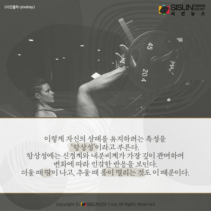 이렇게 자신의 상태를 유지하려는 특성을 ‘항상성’이라고 부른다. 항상성은 인간에게 매우 중요한 부분으로, 이것이 깨지면 면역력이 떨어진다고 표현하기도 한다. 항상성에는 신경계와 내분비계가 가장 깊이 관여하며 변화에 따라 민감한 반응을 보인다. 더울 때 땀이 나고, 추울 때 몸이 떨리는 것도 이 때문이다.