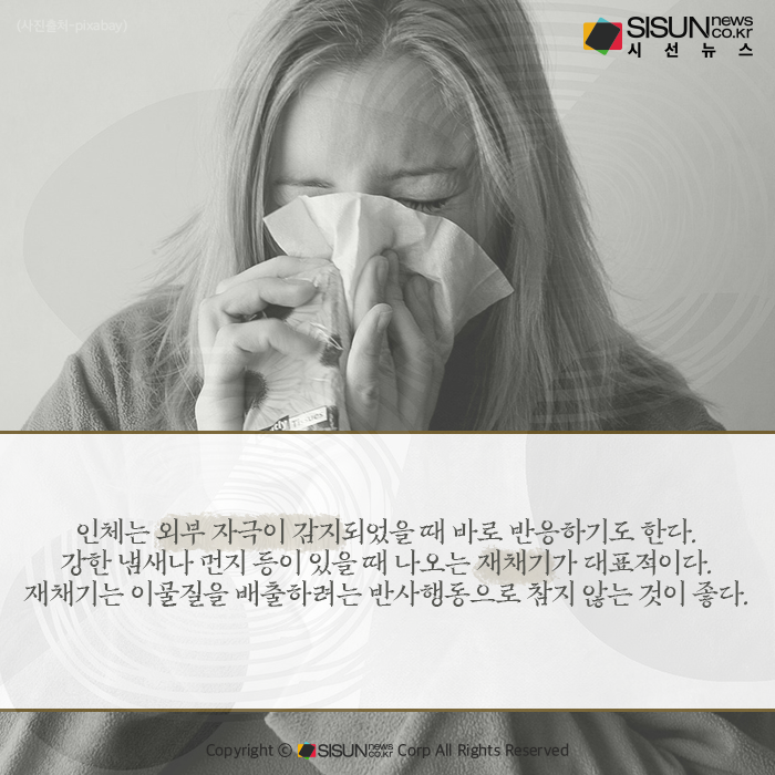 인체는 외부 자극이 감지되었을 때 바로 반응하기도 한다. 강한 냄새나 먼지 등이 있을 때 나오는 재채기가 대표적이다. 재채기는 이물질을 배출하려는 반사행동으로 참지 않는 것이 좋다. 재채기의 속도에 대해서 초속 100m, 시속 360km라는 말도 있는데 캐나다 앨버타주 에드먼턴 소재 공공보건연구소의 바이러스학자인 줄리언 탱 박사에 따르면 시속 16.2km 정도라고 한다.