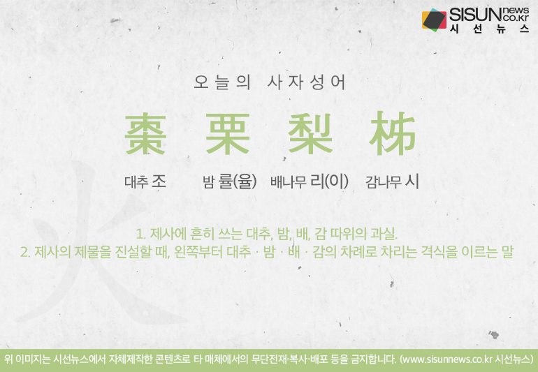 오늘의 사자성어 조율이시[棗栗梨柹]입니다.