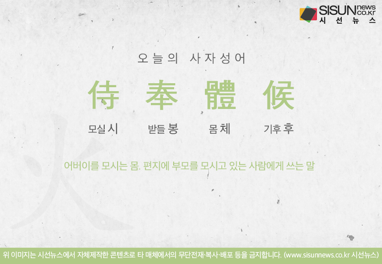 오늘의 사자성어 시봉체후[侍奉體候]입니다.