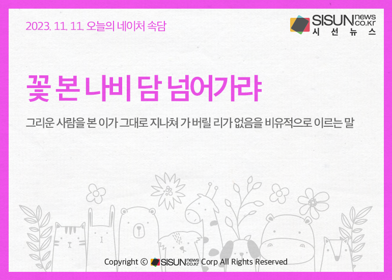 오늘의 네이처속담은 <꽃 본 나비 담 넘어가랴>입니다.