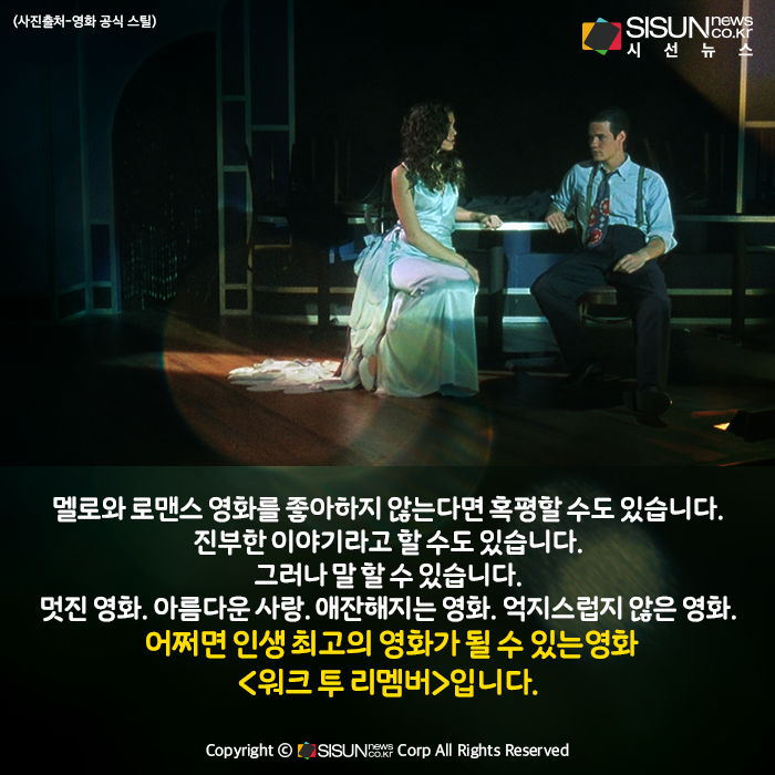 시선뉴스=박진아 기자 | 가족과 함께 할 때, 혼자서 울고 싶을 때, 사랑하는 연인과 로맨스를 한껏 더 즐기고 싶을 때, 당신은 어떤 영화를 선택하나요? 많은 영화들 속에서 결정을 내리기 어려운 당신에게 영화를 추천, 요리합니다. 오늘의 영화는 ‘워크 투 리멤버(A Walk To Remember, 2002)’입니다.
