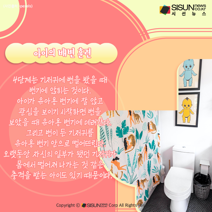 시선뉴스=양원민 기자 / 디자인=김선희 proㅣ아이는 언제쯤 기저귀를 뗄까? 또 언제쯤 배변 훈련을 시작하며, 유아용 변기를 사줘야 할까? 대소변을 가리는 일은 아이에게 중요한 과제이고 꼭 해야하는 일이지만, 억지로 하다가는 자칫 마음의 상처가 되기도 한다. 기저귀를 떼기 전 알아둬야 하는 아이의 배변 훈련에 대해 알아보자.