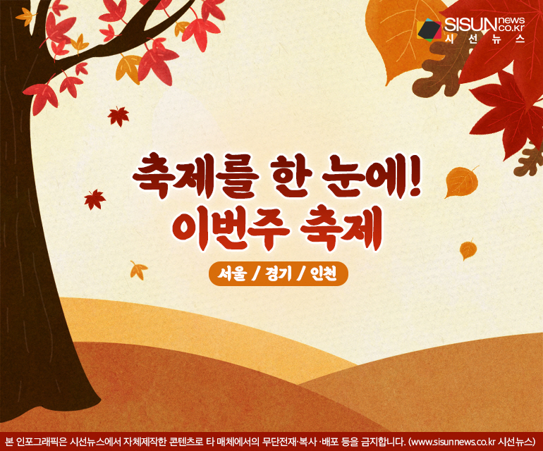 시선뉴스=양원민 기자ㅣ2023년 11월, 한 주간의 축제를 한 눈에 보자. 이번 주(11.03.~11.09.) 축제 일정을 정리해 보았다. 먼저 서울, 경기 및 인천 지역 축제이다. 이 외의 지역은 ‘전라/경상/충청남북 및 강원/제주’ 편에서 확인할 수 있다.
