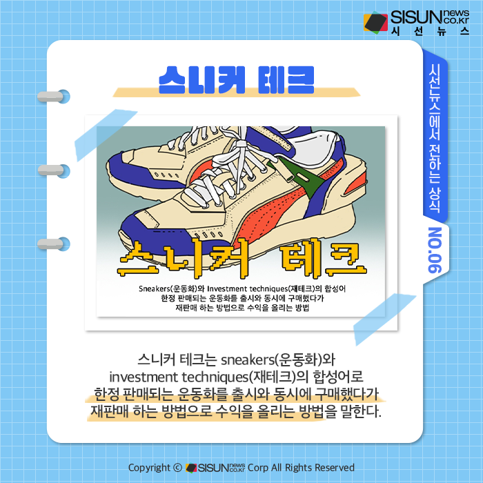 스니커 테크는 sneakers(운동화)와 investment techniques(재테크)의 합성어로 한정 판매되는 운동화를 출시와 동시에 구매했다가 재판매 하는 방법으로 수익을 올리는 방법을 말한다. 과거 유명 연예인이나 스포츠 스타 등을 중심으로 한정판 운동화들에 대한 소개가 이루어지며 대중들의 관심이 높아졌으며, 특히 한정판 운동화들이 부가가치가 생겨 매우 높은 가격에 거래되고 있다는 사실이 알려지며 점차 재테크 요소도 부각되기 시작했다.