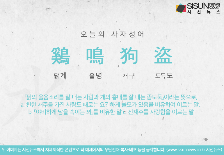 오늘의 사자성어 계명구도[鷄鳴狗盜]입니다.