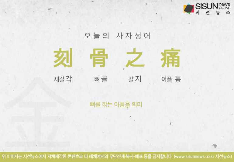 오늘의 사자성어 각골지통[刻骨之痛]입니다.