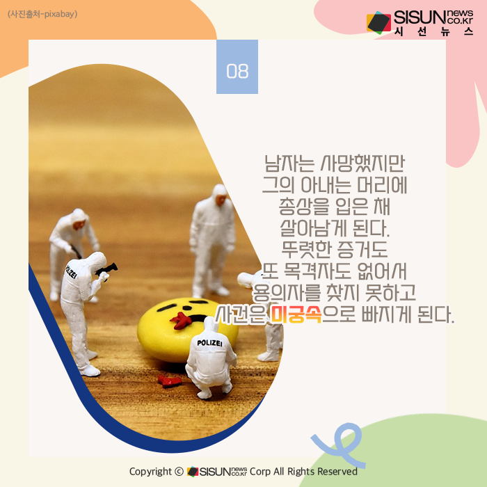 남자는 사망했지만 그의 아내는 머리에 총상을 입은 채 살아남게 된다. 뚜렷한 증거도 또 목격자도 없어서 용의자를 찾지 못하고 사건은 미궁속으로 빠지게 된다.