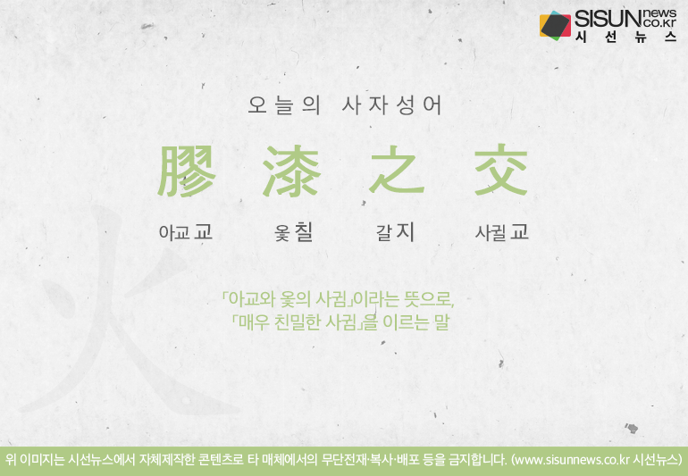 오늘의 사자성어 교칠지교[膠漆之交]입니다.