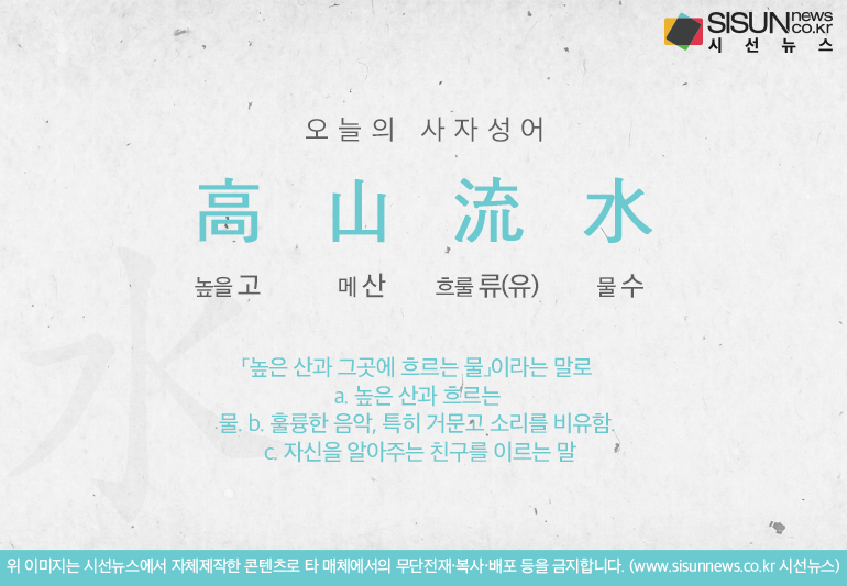 오늘의 사자성어 고산유수[高山流水]입니다.