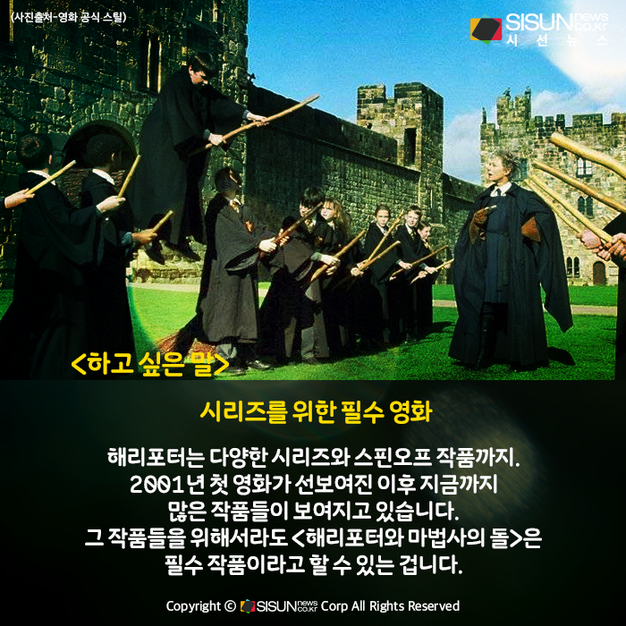해리포터는 다양한 시리즈와 스핀오프 작품까지. 2001년 첫 영화가 선보여진 이후 지금까지 많은 작품들이 보여지고 있습니다. 그 작품들을 위해서라도 <해리포터와 마법사의 돌>은 필수 작품이라고 할 수 있는 겁니다.