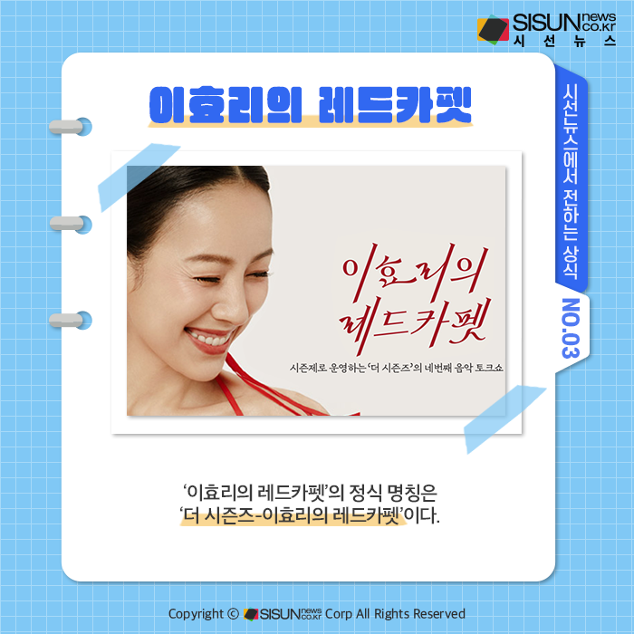 ‘이효리의 레드카펫’의 정식 명칭은 ‘더 시즌즈-이효리의 레드카펫’이다. 기존 KBS의 간판 토크쇼였던 ‘유희열의 스케치북’이 종영하며 시즌제로 운영하는 ‘더 시즌즈’가 2023년 초 가수 박재범과 함께 힘차게 출발했다.