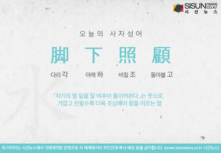 오늘의 사자성어 각하조고[脚下照顧]입니다.