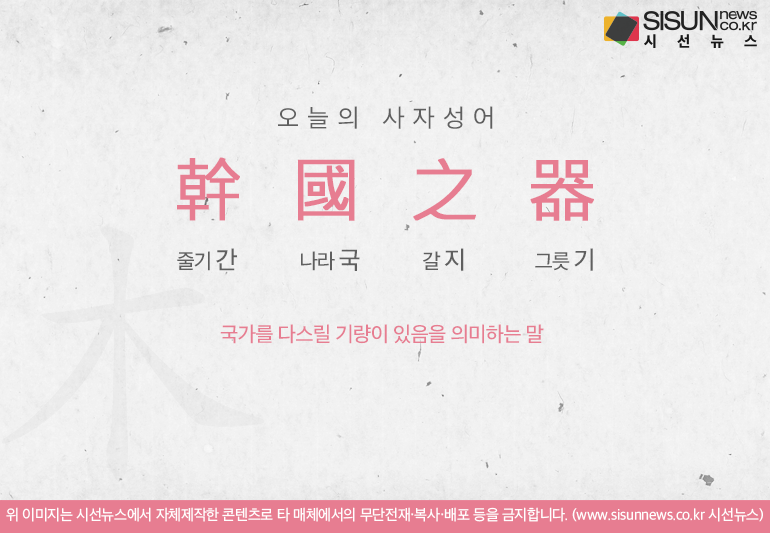 오늘의 사자성어 간국지기[幹國之器]입니다.