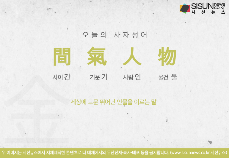 오늘의 사자성어 간기인물[間氣人物]입니다.