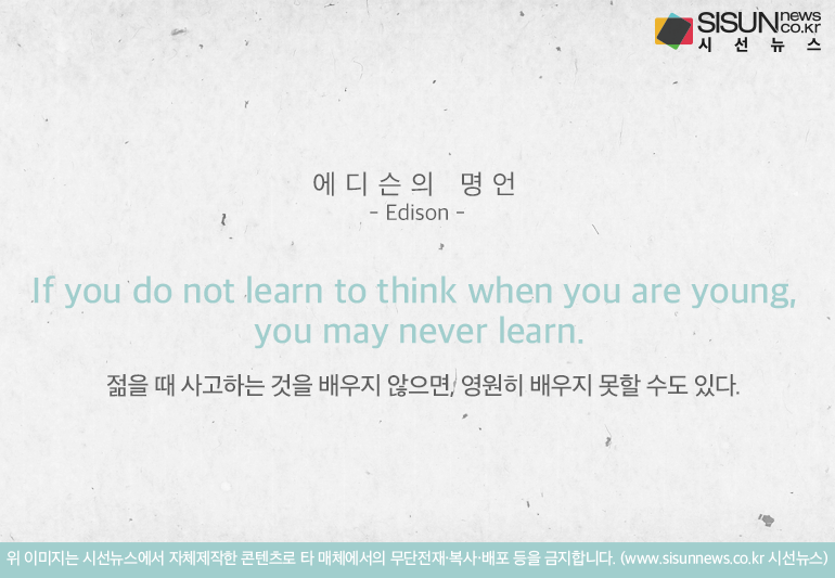 ‘젊을 때 사고하는 것을 배우지 않으면, 영원히 배우지 못할 수도 있다.’ <에디슨>