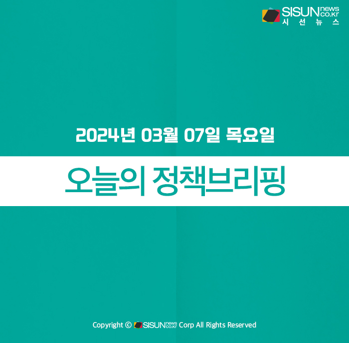 시선뉴스=양원민 기자 | 대한민국 정부 19개 부처에서는 추진하는 행정과 정책을 담은 보도 자료를 배포한다. 2024년 03월 07일 오늘의 정책브리핑을 소개합니다.